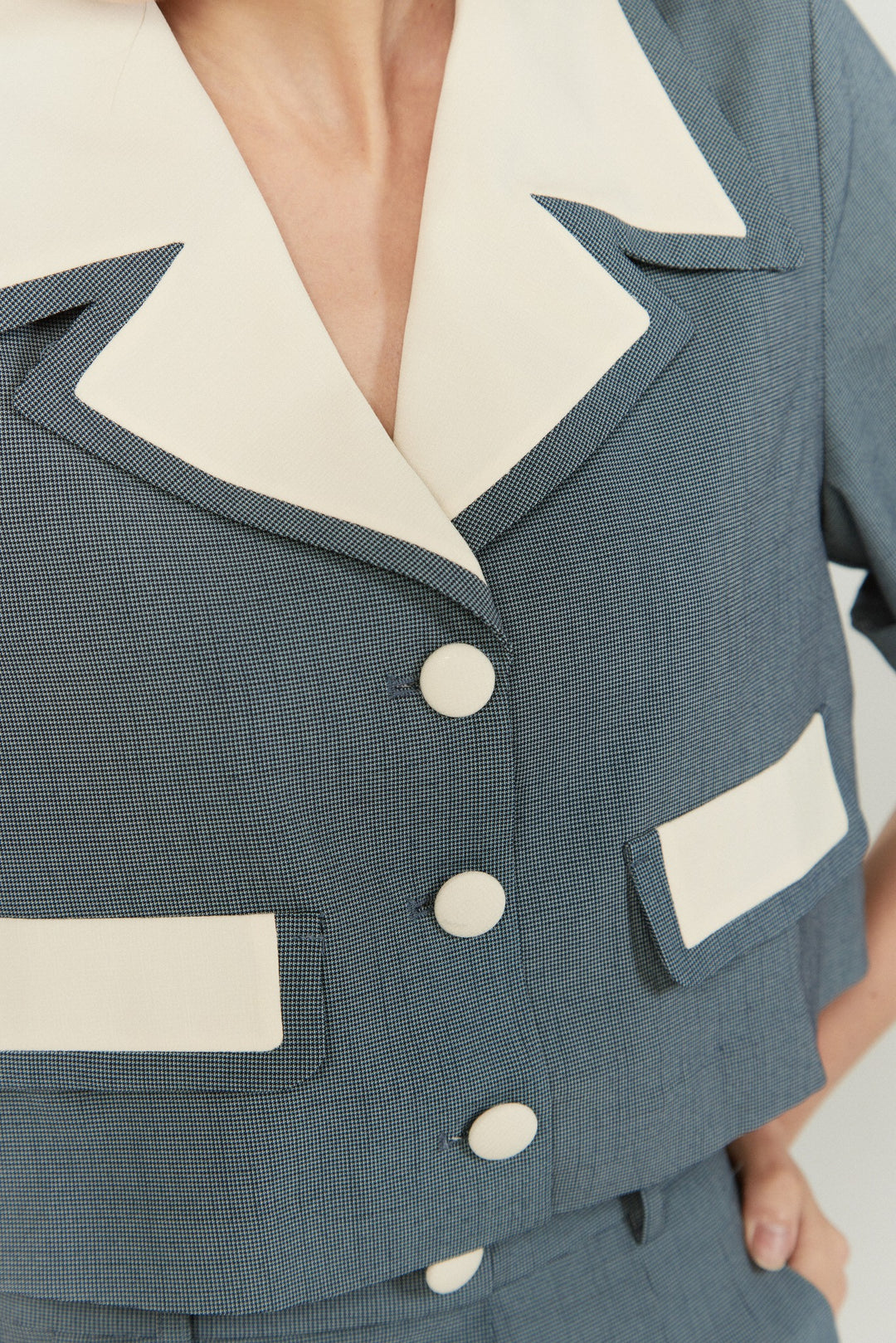 襟のパッチワークがポイントの商品です👔