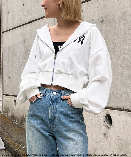 ショート丈のパーカーなのでワンピースの羽織やハイウエストボトムとの相性が◎