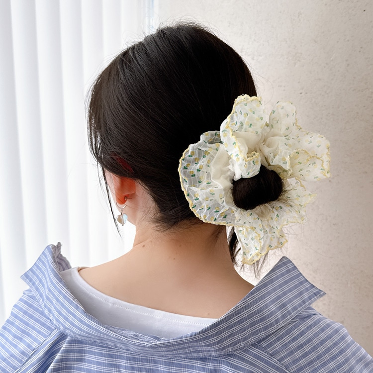 小花柄シアーシュシュ...